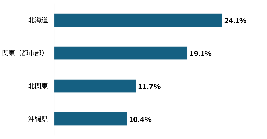 花粉シーズン(2月~5月)に訪れて「比較的花粉症が楽だった・行ってよかった」と感じた場所を調査したところ、「北海道」が最も多いことがわかりました。理由としては、「スギ・ヒノキが少ない」という地理的条件はもちろん、「地下街や駅直結施設が充実し、外気に触れる時間を最小限にできた」「温泉の湯気や宿の湿度で喉の調子が良くなった」など、滞在環境の質を評価する声もみられました。