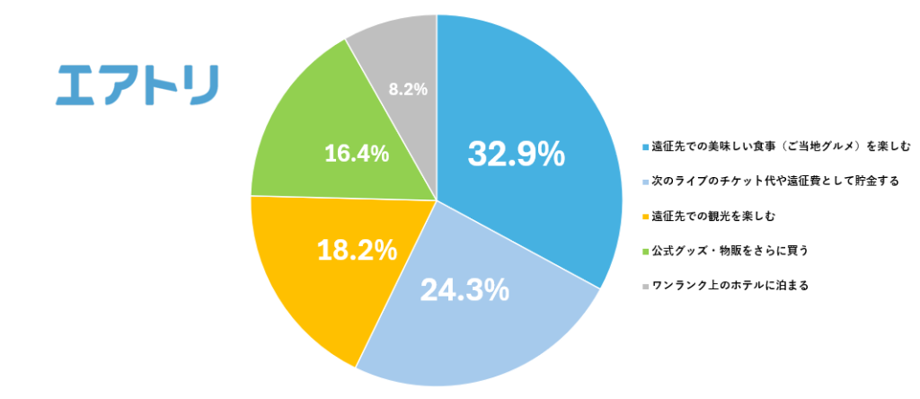 ITの力で、エアトリ旅行事業、ITオフショア開発事業、訪日旅行事業・Wi-Fiレンタル事業、メディア事業、投資事業(エアトリCVC)、地方創生事業、クラウド事業、マッチングプラットフォーム事業・デジタルマーケティング事業、CXOコミュニティ事業、HRコンサルティング事業、航空会社総代理店事業、レンタカー事業、海外ツアー事業、エンタープライズDX開発事業、法人DX推進事業・ヘルスケア事業(以降の事業は投資先にて注力)、人材ソリューション事業、クリエイティブソリューション&DX事業、AIロボット事業、ゴルフライフサポート事業、外貨自動両替機事業と町家宿泊・日本文化体験事業を含む全21事業を手掛ける株式会社エアトリ(本社:東京都港区、代表取締役社長 兼 CFO:柴田 裕亮、証券コード:6191、以下当社)は、直近3年以内にライブ・コンサートに参加した男女を対象に、「推し活遠征に関する実態調査」を実施しました。結果は以下の通りです。