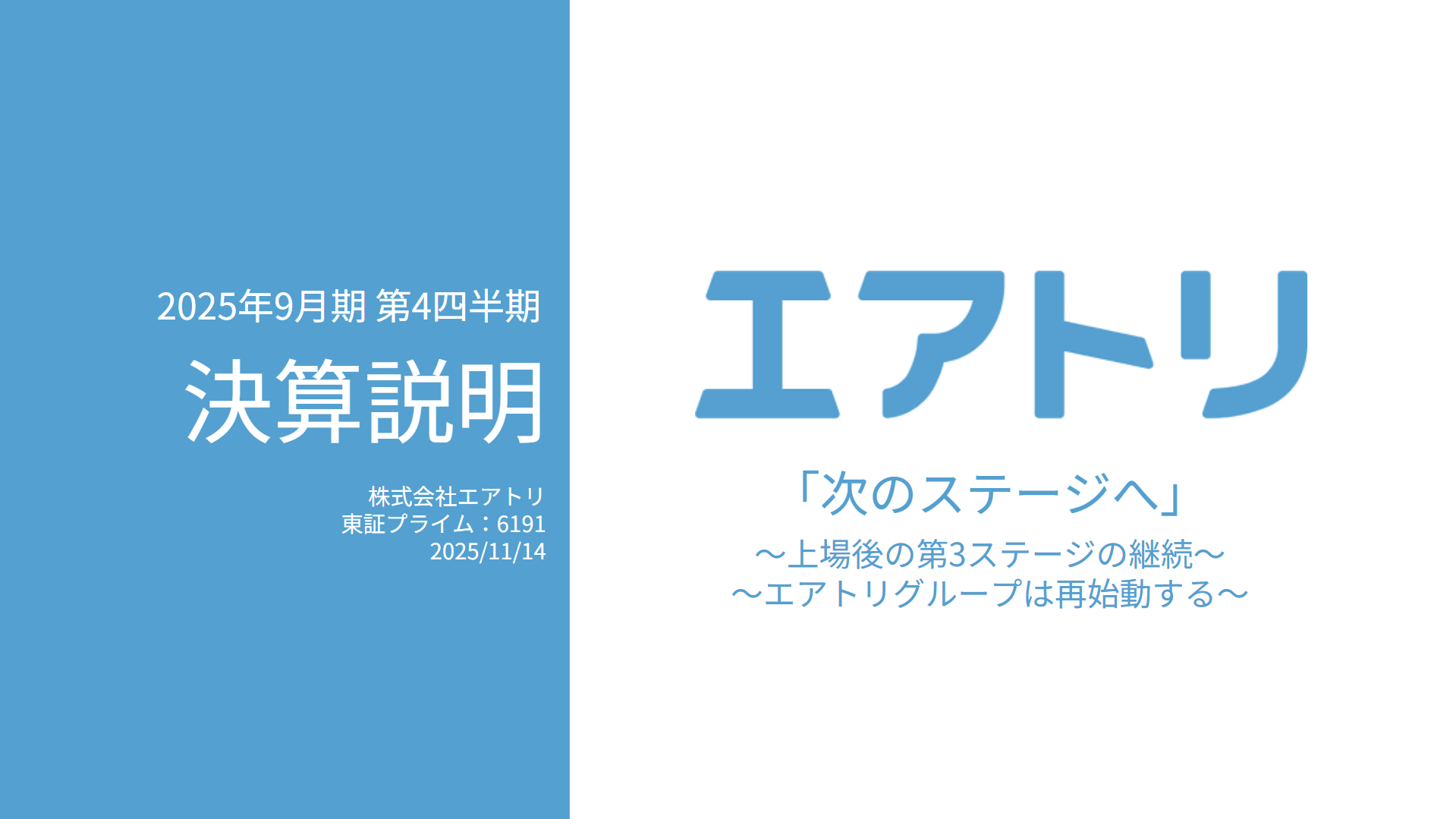 【2025年9月期第4四半期 決算発表】連結取扱高1,203億円(YoY97.4%)、連結売上高280.2億円(YoY105.4%)、減損等控除前営業利益46.6億円(YoY130.2%)、減損等控除後営業利益31.5億円(YoY133.4%)、エアトリ旅行事業におけるさらなる成長鈍化がある一方、投資事業(エアトリCVC)が利益を底上げし、過去最高益を達成!各事業でのさらなる成長へのチャレンジを継続し、成長投資・事業ポートフォリオの拡大を断続的に実行